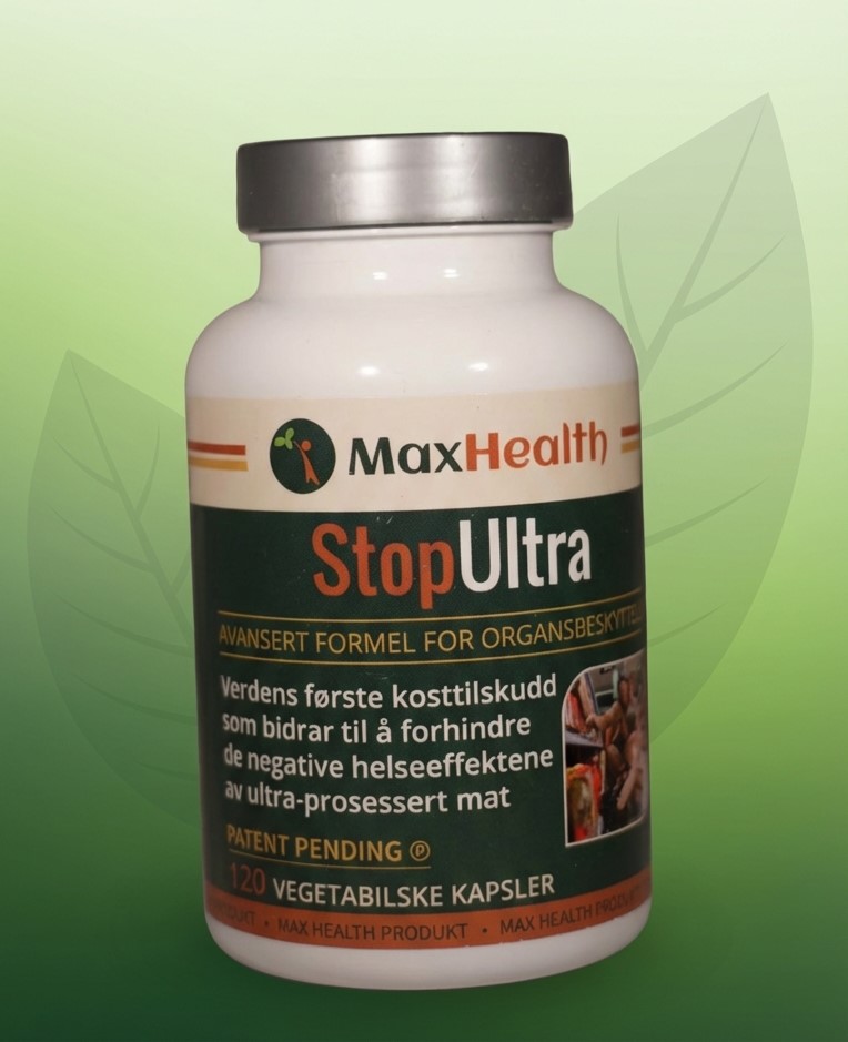 Stop Ultra bekjemper oksidativt stress fra ultraprosessert mat, som utgjør opptil 60% av mange dietter og øker risiko for overvekt, hjerteproblemer og depresjon. Det støtter tarmhelse, reduserer oppblåsthet og gir mer energi ved daglig bruk