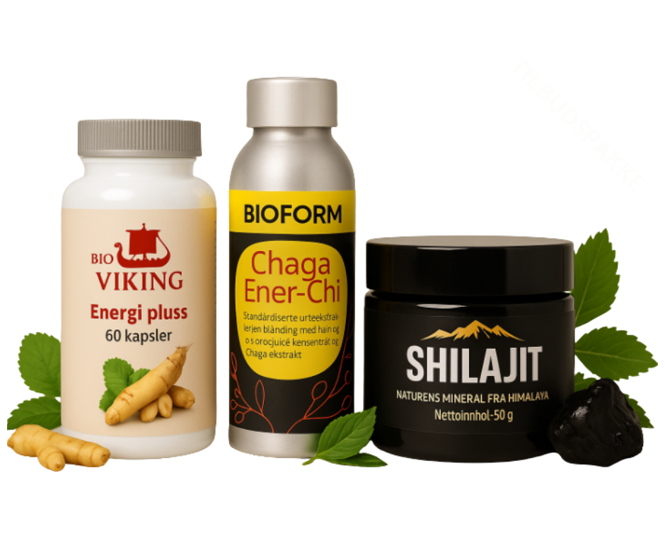 Opplev økt energi og mental klarhet med vår komplette Energi Pakke! Inneholder Shilajit Resin, Chaga Ener-Chi og Energi Pluss – en kraftfull kombinasjon av naturens mest virkningsfulle ingredienser. 1 måneds forbruk.